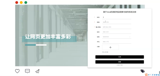 在注册流程中,用户在Vue前端填写必要信息(如用户名、密码等)并提交。前端将这些信息通过HTTP请求发送到Java后端。后端处理这些信息,检查用户名是否唯一,并将新用户数据存入MySQL数据库。完成后,后端向前端发送注册成功的确认,前端随后通知用户完成注册。这个过程实现了新用户的数据收集、验证和存储。系统注册界面如图5-2所示: