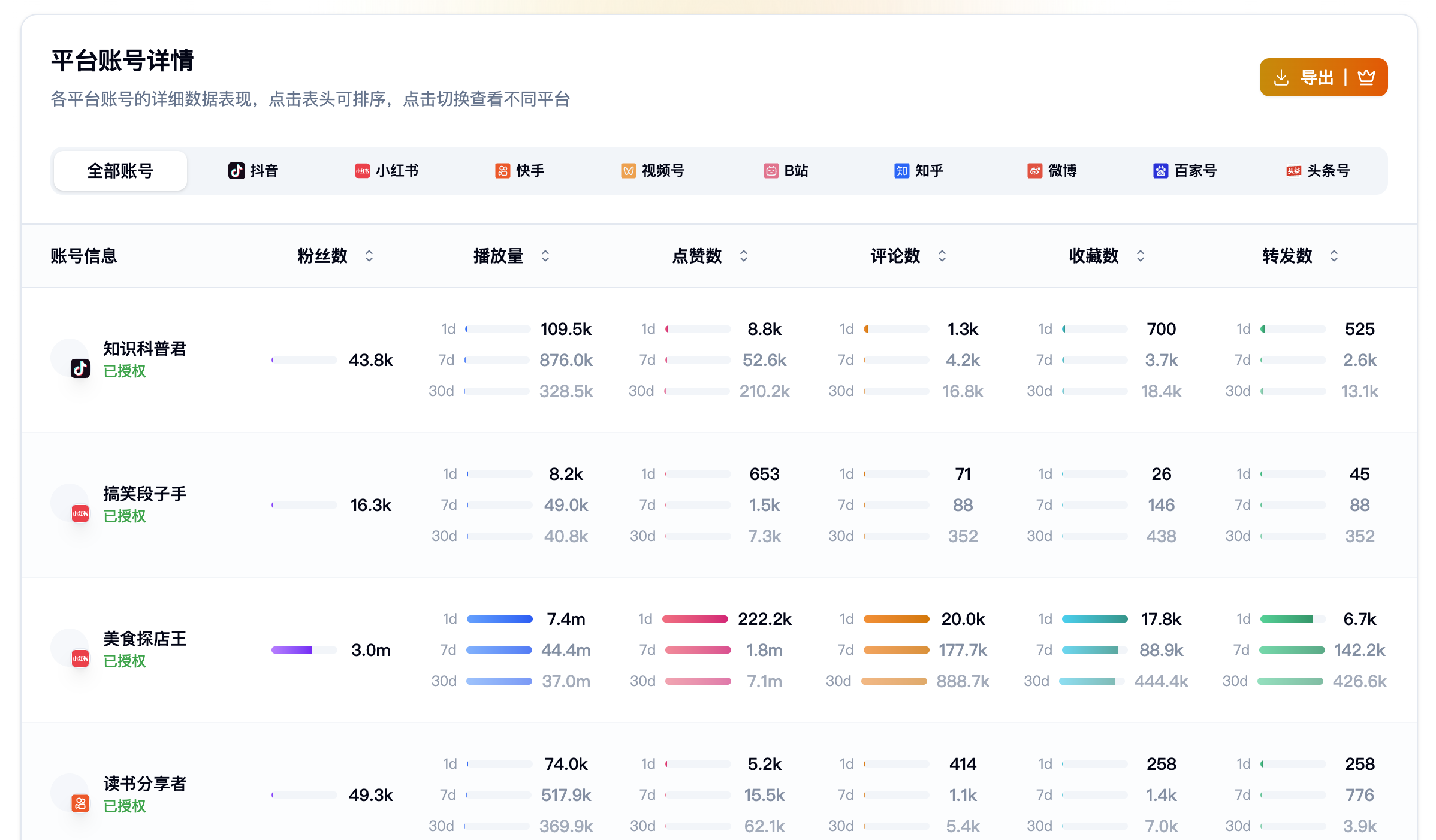 工具助力:使用 CreBee 的账号数据看板,可自动汇总矩阵账号表现、互动率、转化率,帮助你快速复盘和优化。