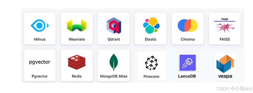 图中展示的是当前工业界常用的向量数据库/向量存储工具,它们的核心功能是存储向量并支持高效的相似性检索,但在定位、特性、适用场景上各有侧重,以下分类介绍:
