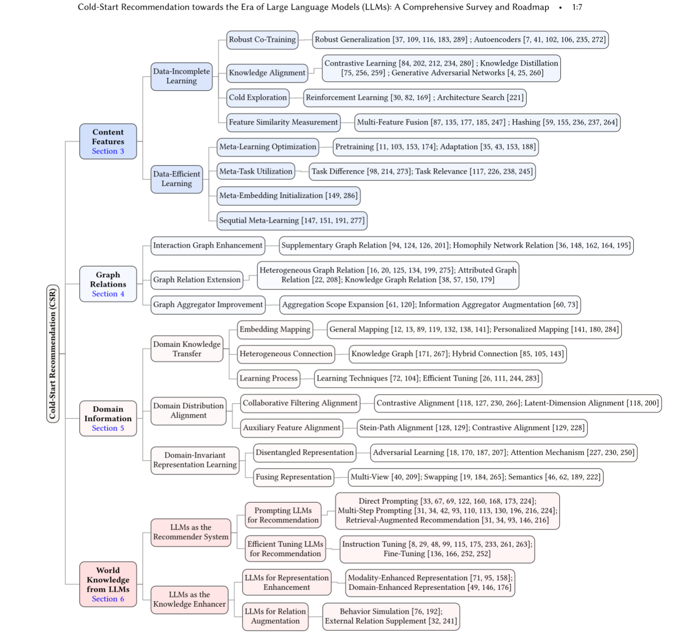 文章首次系统整合了内容特征、图关系、领域信息、LLM 世界知识四大知识来源的冷启动推荐方法,明确了 9 类冷启动任务,梳理了技术演进脉络,并指出了多模态、基础模型等未来关键方向。