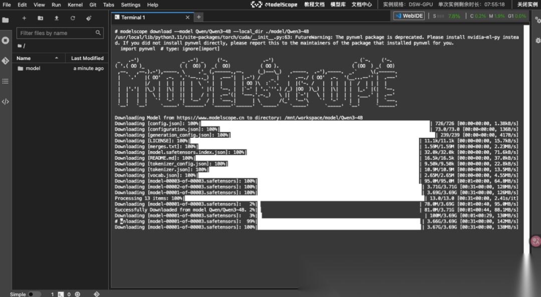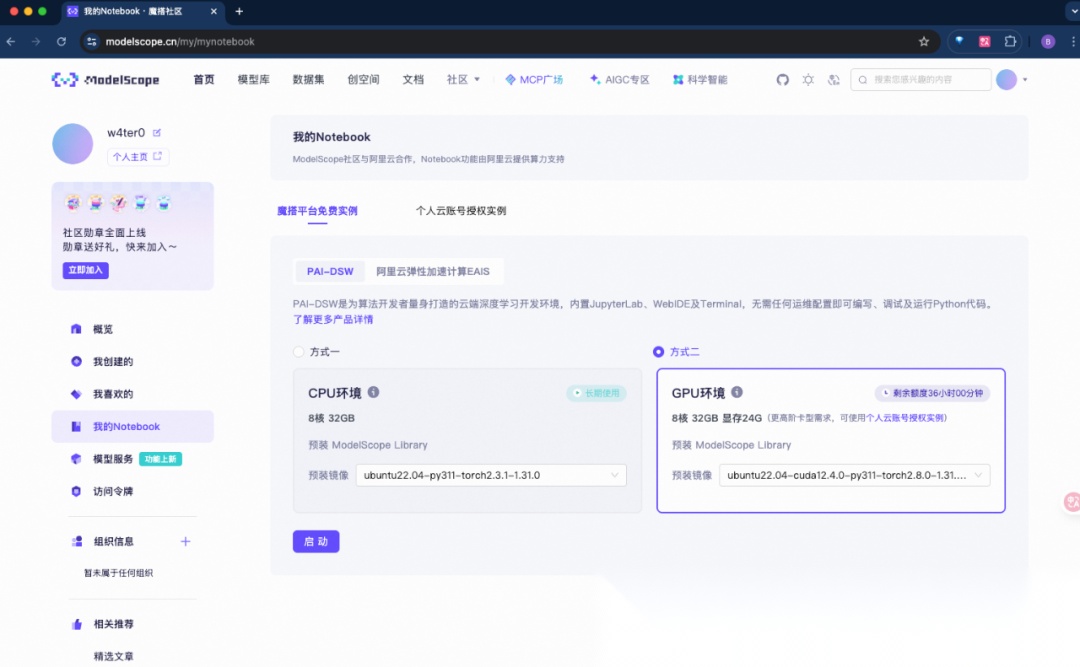 以上我都没有,所以使用ModelScope提供的免费GPU资源。