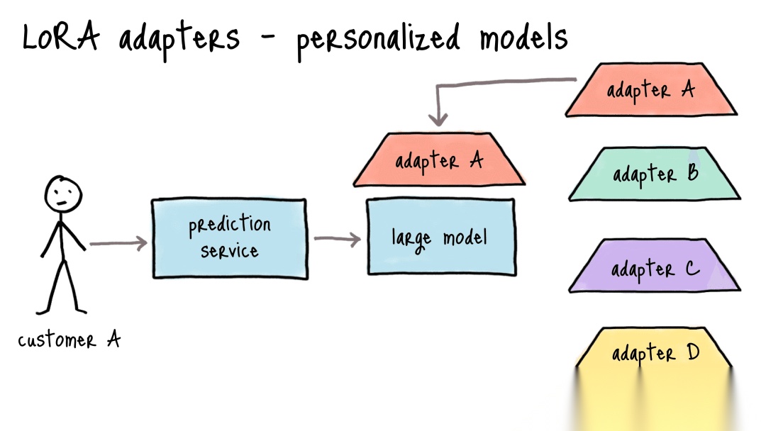 - LoRA方案:1个基座模型(280GB) + 10个50MB适配器 ≈ 280.5GB,月成本$2,800