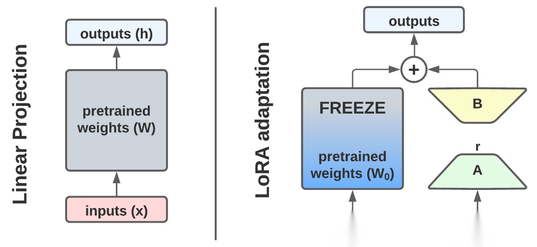 冻结原模型参数,只训练额外的小参数矩阵来调整模型输出