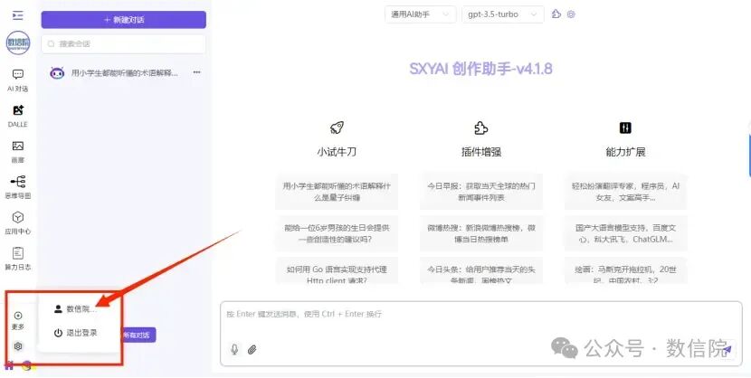 数信云创作助手始终致力于以创新功能提升用户体验,现在就访问 http://sxygptcloud.com:8080/,开启全新高效创作之旅!快来体验吧,让每一次创作都更简单、更精彩!