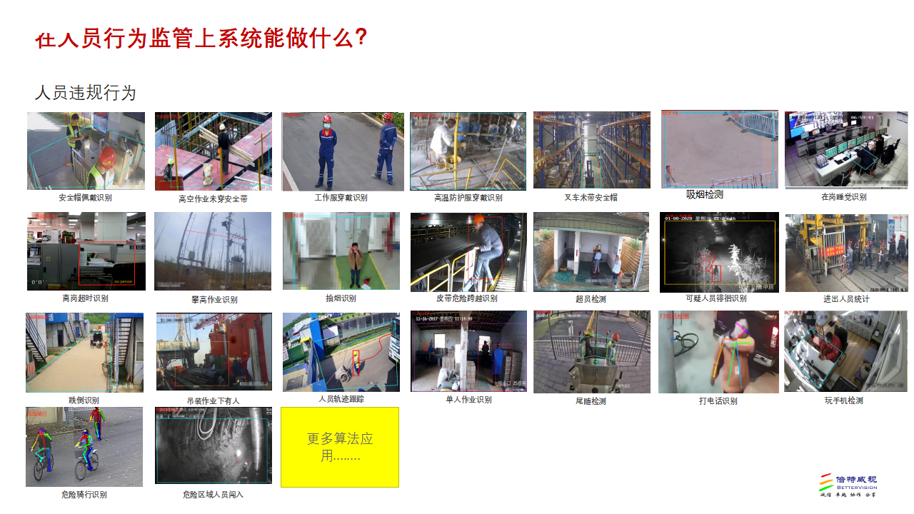 - 场景痛点2(出入口/区域管控):安全帽/反光衣未佩戴、陌生人闯入、区域超员聚集等违规行为频发,依靠保安肉眼筛查效率低、易遗漏。