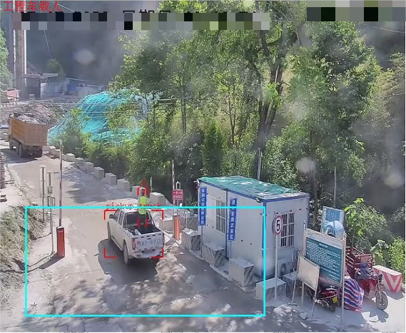 - 车辆违规驶入限行区域:检测非授权车辆(如外部社会车辆)或特定类型车辆(如货车进入人员步行区)进入禁止区域。