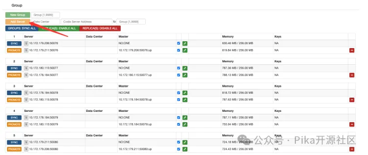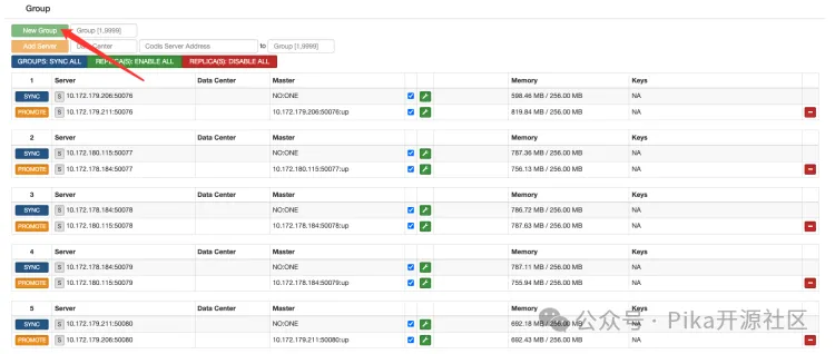 1.添加 group (注意:PikiwiDB(pika) 1主一从为一个 group )