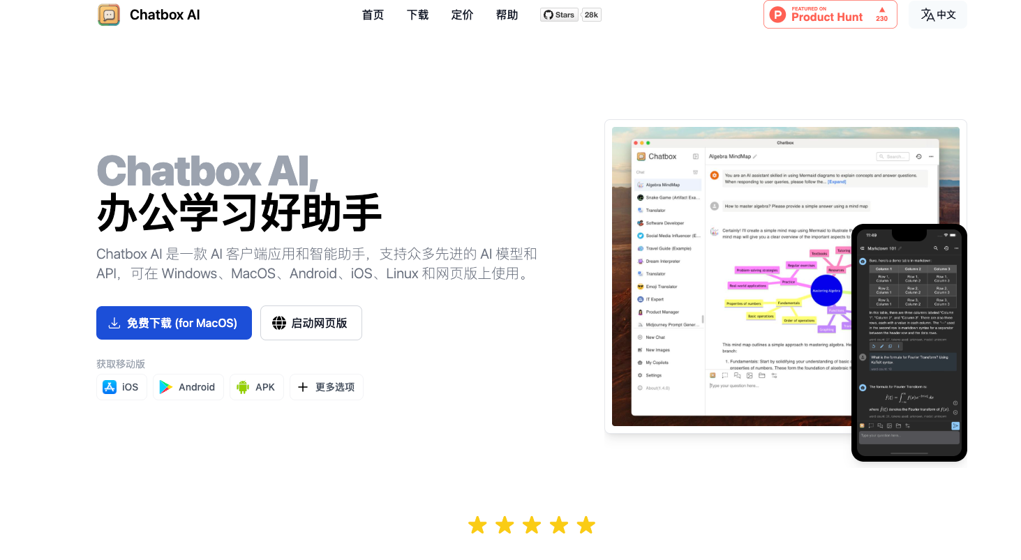Chatbox AI 是一款 AI 客户端应用和智能助手,支持众多先进的 AI 模型和 API,可在 Windows、MacOS、Android、iOS、Linux 和网页版上使用