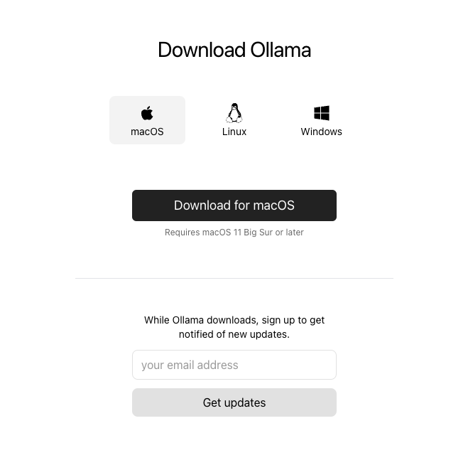 - 访问Ollama官网 ,根据你的操作系统(Windows、Mac或Linux)下载相应安装包。