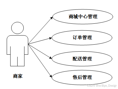 商家进行商城中心管理,包括订单管理,配送管理,售后管理。商家用例图如图3-3所示。