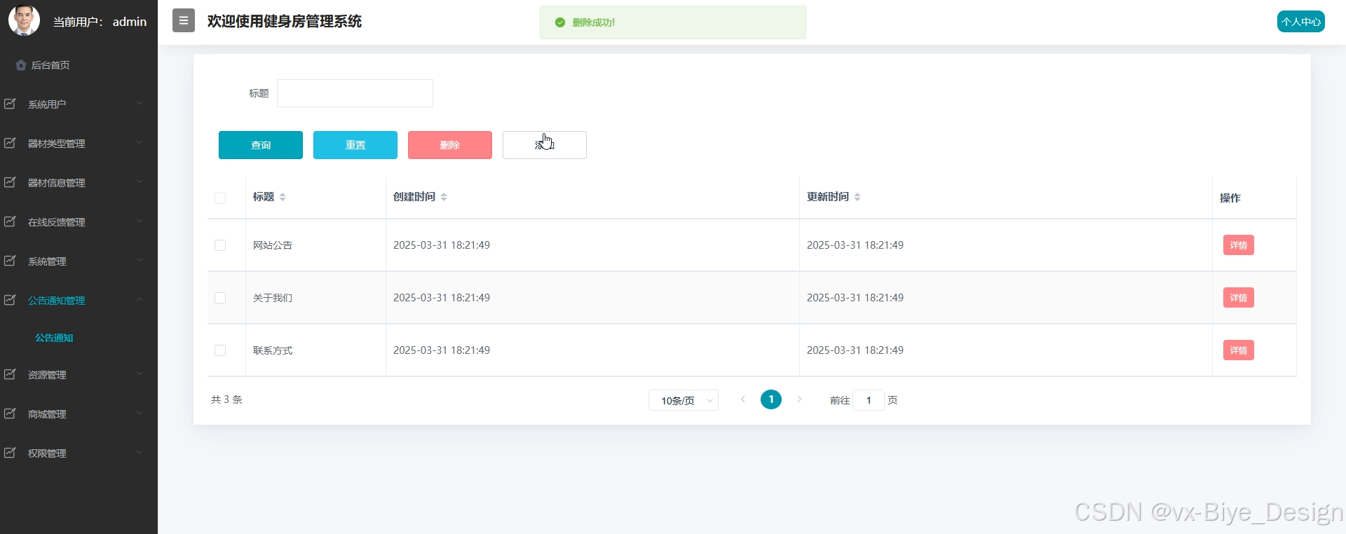 管理员能够成功删除公告通知,被删除的公告不再出现在公告通知列表中 |