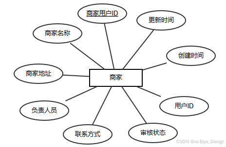 (1)商家主要是用来存储商家用户的基本信息和审核状态。主要包括商家用户ID、商家名称、商家地址、负责人员、联系方式、审核状态、用户ID、创建时间、更新时间等。商家如表 4-1 所示。