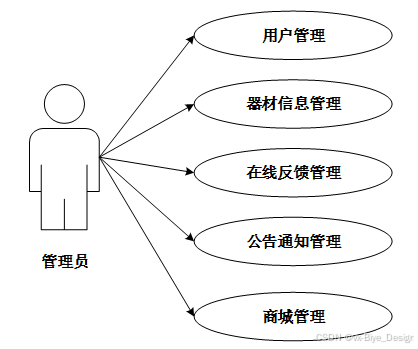 管理员负责用户信息管理,器材信息管理,处理在线反馈,发布和管理公告通知,管理商城信息。管理员用例图如图3-2所示。