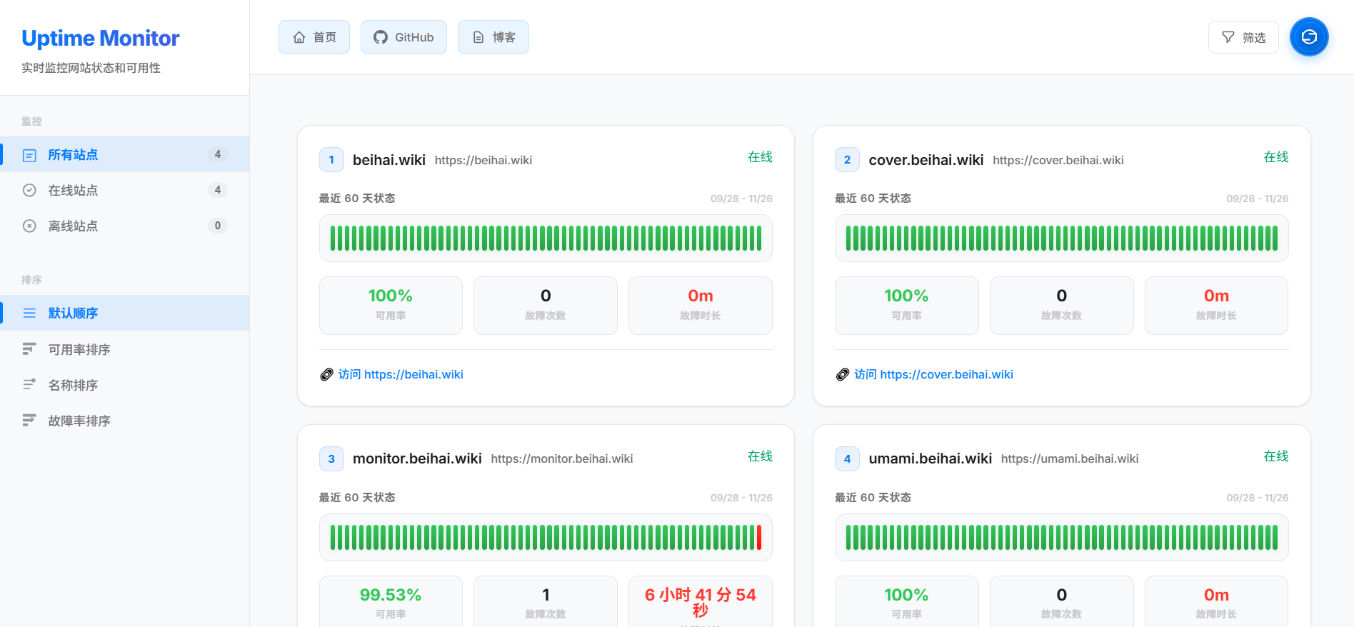 第一次在github开源,欢迎大家给我点个starthttps://github.com/BeihaiWiki/uptime-monitor
