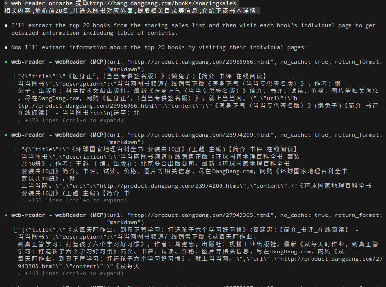 这里利用web reader mcp 直接获取网页数据内容