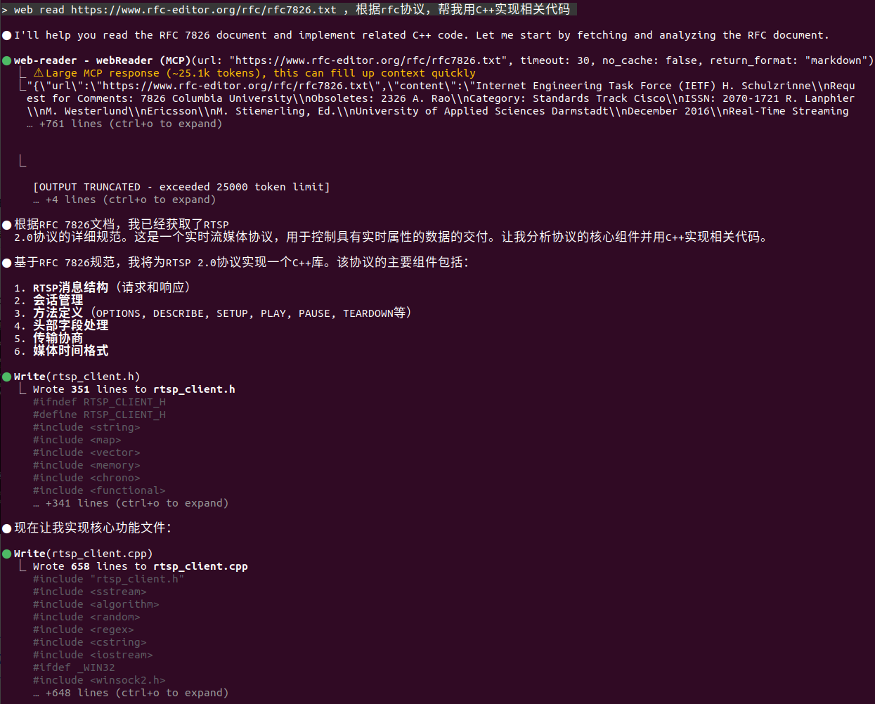 不用懂任何的RFC标准,让GLM帮我们理解RFC内容基础上,生成对应符合RFC要求的客户端/服务端实现