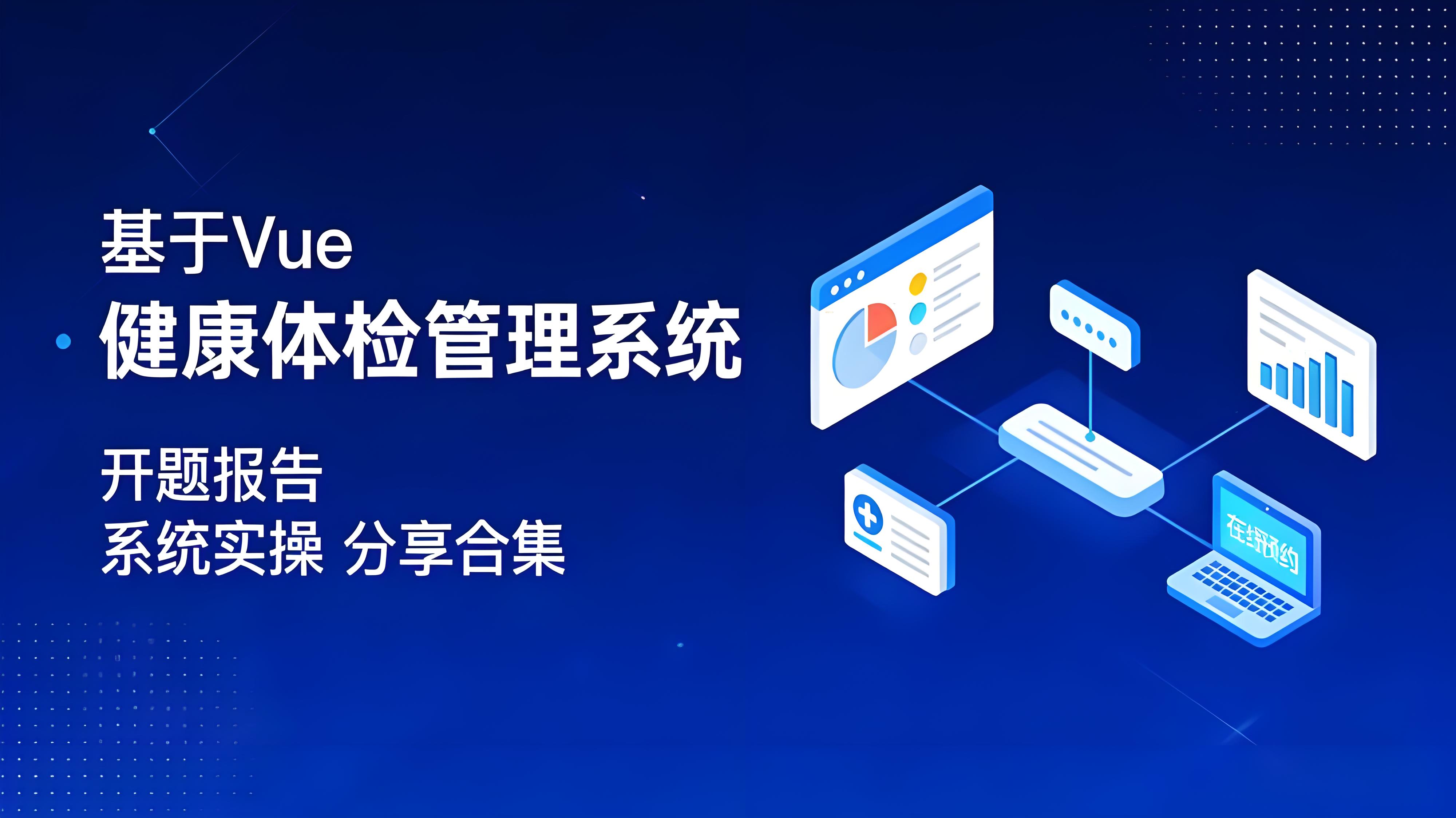 - 系统平台:开发一套基于Vue的健康体检管理系统,包括体检者端和管理员端,实现体检预约、体检流程管理、体检报告管理、健康评估与建议等核心功能。