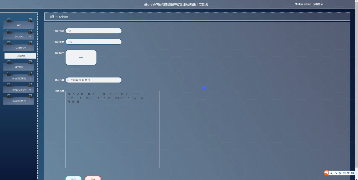 - 系统管理模块:为体检机构管理员提供后台管理界面,实现体检套餐管理、人员管理、设备管理、数据统计等功能,方便管理员对体检机构进行全面管理。
