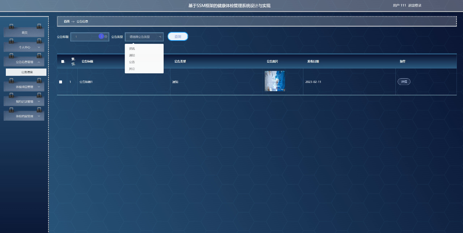 与此同时,互联网技术的飞速发展,尤其是前端框架的广泛应用,为优化健康体检管理提供了新的解决方案。Vue.js作为一款轻量级、高效且易于上手的前端框架,具有响应式数据绑定、组件化开发、虚拟DOM等优势,能够快速构建出交互性强、用户体验良好的Web应用。因此,开发基于Vue的健康体检管理系统具有重要的现实意义。