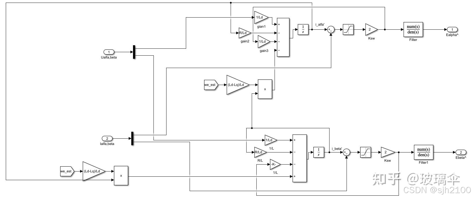 // 估计的状态方程: dEstIα/dt = (Vα - R·EstIα - Êα - Zα)/L dEstIβ/dt = (Vβ - R·EstIβ - Êβ - Zβ)/L