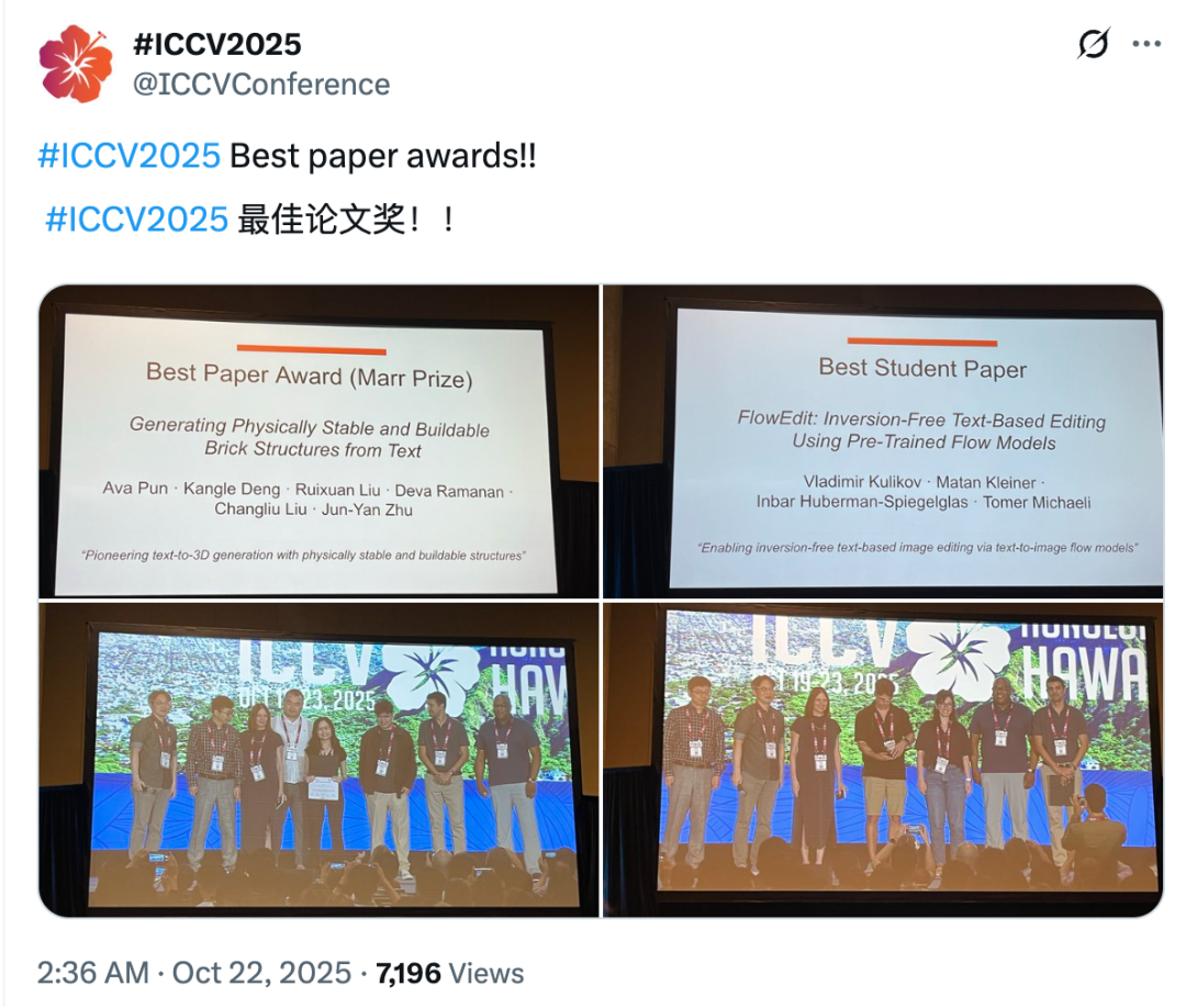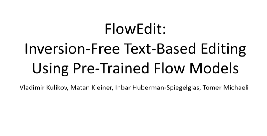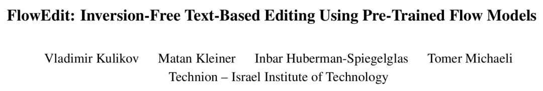 最佳论文奖是来自以色列理工学院(Technion)的论文《FlowEdit: Inversion-Free Text-Based Editing Using Pre-Trained Flow Models》。
