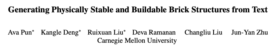 最佳论文奖是来自卡耐基梅隆大学,AI 领域知名青年学者朱俊彦带领团队的论文《Generating Physically Stable and Buildable Brick Structures from Text》。