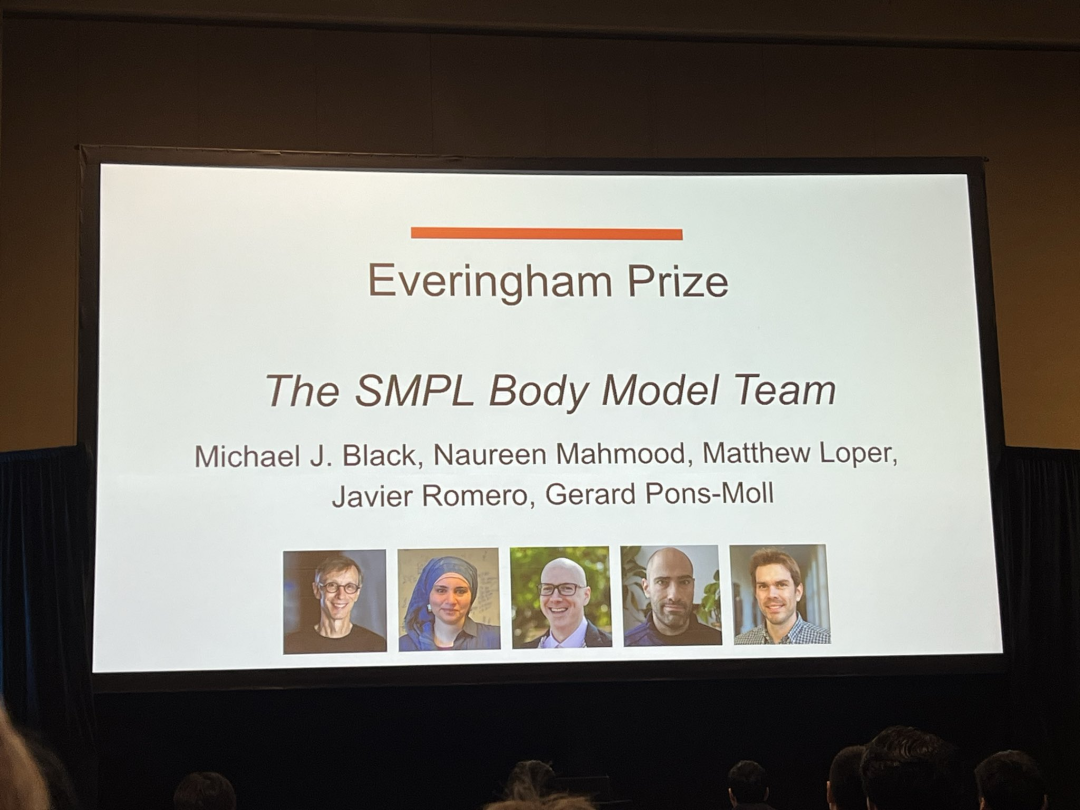一个是人体 3D 模型 SMPL 的团队。SMPL 是一种由人体扫描数据训练的三维可变形人体模型,它以参数化方式精准表示人体姿态与形状,被广泛应用于动画、虚拟人、动作捕捉、AR/VR 及生成式 AI 中,对计算机视觉与数字人领域的进步具有里程碑式影响。