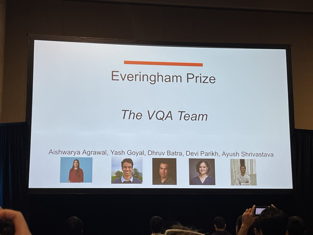 另一个是 VQA 数据集团队。VQA 数据集是一种将图像理解与自然语言问答结合的大规模基准数据集,它推动了多模态 AI 在视觉理解、语言推理和跨模态语义对齐等方向的研究与突破。