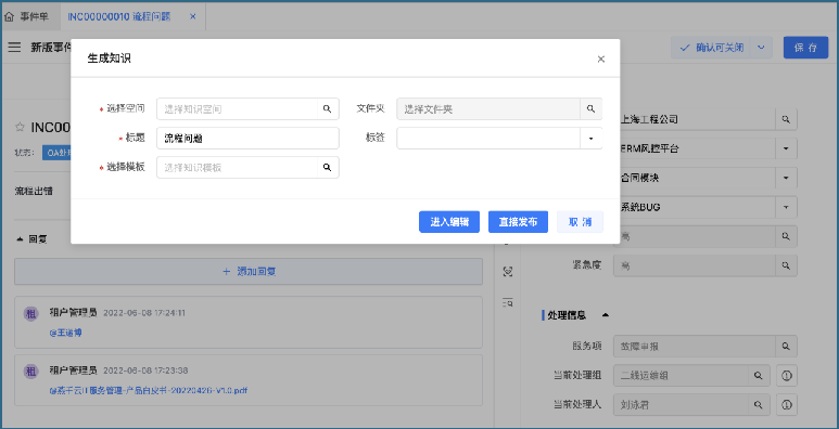 平台将每次服务中积累的经验与解决方案沉淀为知识文档,形成可供自助使用的AI知识库。