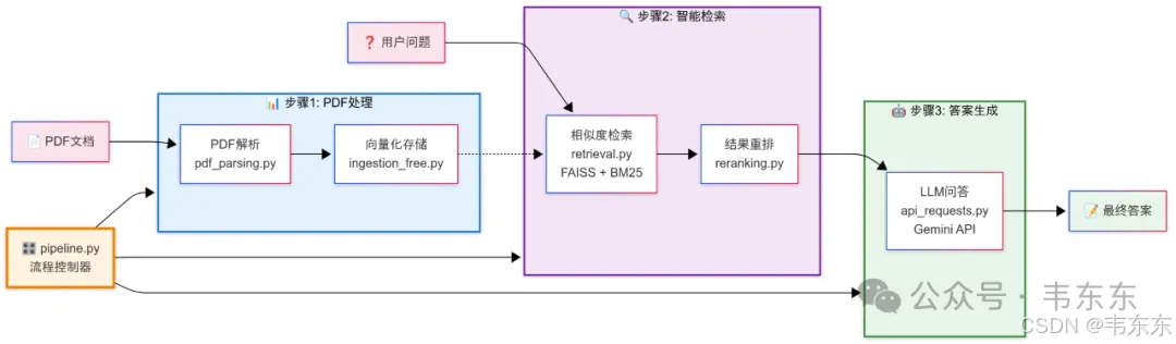 因为我的 OpenAI 的 API 莫名其妙突然被 ban,在复现过程中我对原项目相关脚本配置做了如下调整:嵌入模型: OpenAI text-embedding-3-large(1536 维) → all-MiniLM-L6-v2(384 维)、对话模型: GPT(gpt-4o、gpt-o3) → Gemini 2.5 Flash(每日 500 次免费额度)、重排序: 原方案的重排序也依赖 GPT-4o-mini 进行相关性评分,这次复现我省略了此部分,各位可自行添加测试。