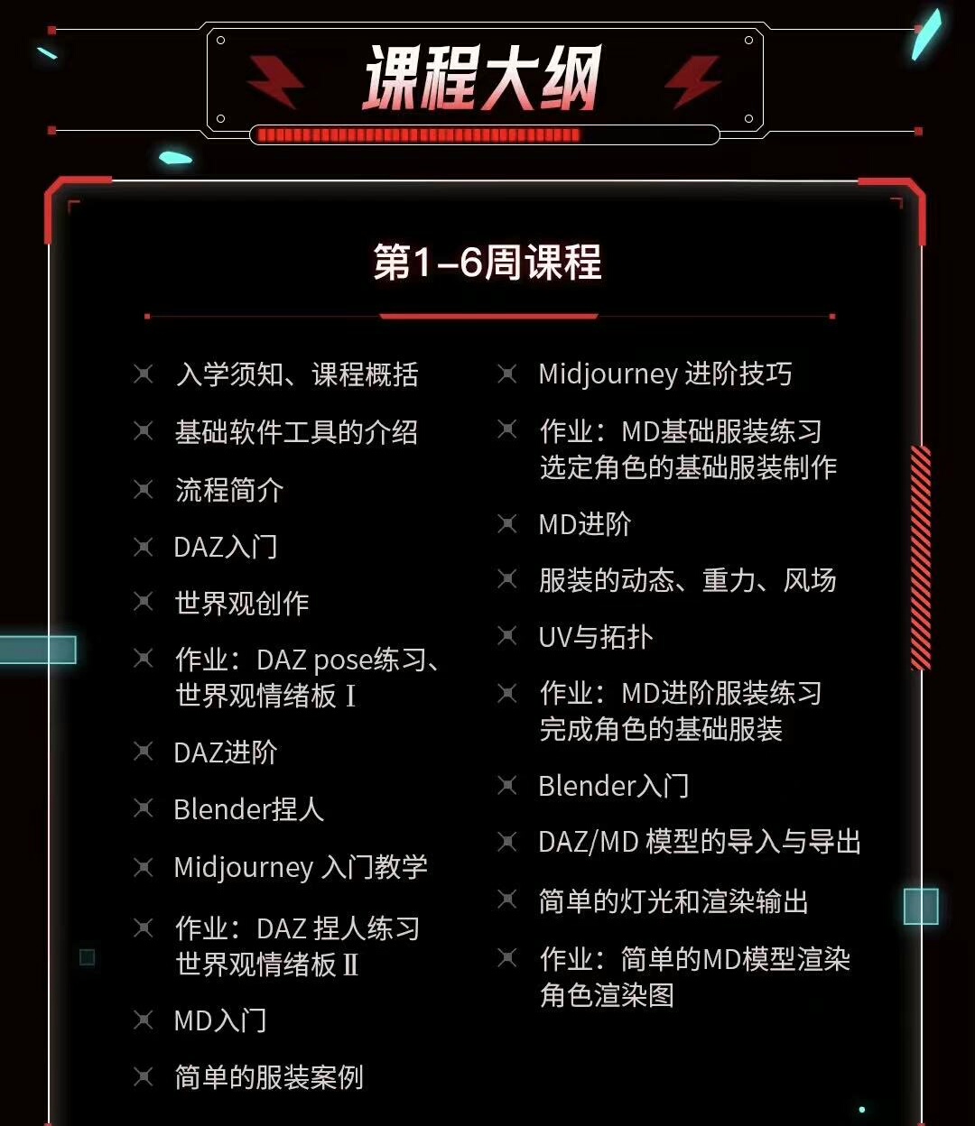 课程内容深度融合多种行业热门工具,包括DAZ Studio、Blender、Midjourney、Marvelous Designer(MD)等软件的实际应用技巧,帮助学员掌握从角色建模到服装设计的全流程制作能力。