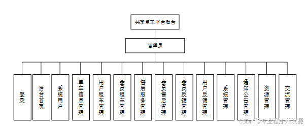 - 管理员:具备对用户、单车信息、租车服务、售后服务、订单、反馈、论坛、资讯等所有管理功能权限,同时可以处理反馈和异常情况,查看销售统计,管理系统配置,更新维护系统等。