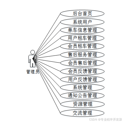 共享单车平台管理员角色用例图如下所示。