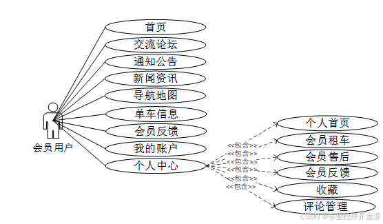 共享单车平台会员用户角色用例图如下所示。