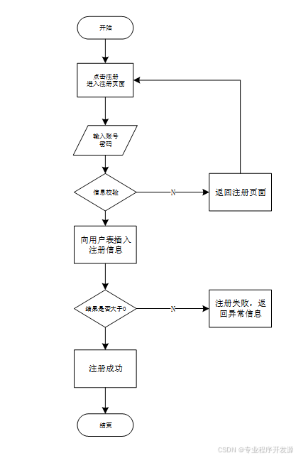 注册的过程,第一部分是账号的注册,第二部分是信息完善。在业务开展过程中,管理员可对用户信息进行修改等管理操作,注册流程如图3-4用户注册流程图所示。