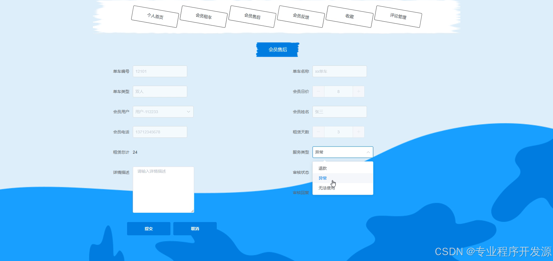 - 交易流程:用户注册与登录功能,支持第三方登录和快速注册。租车租车流程,包括租车数量选择、提交租赁、支付等功能。订单管理,包括订单状态跟踪、订单反馈处理、评价功能等。