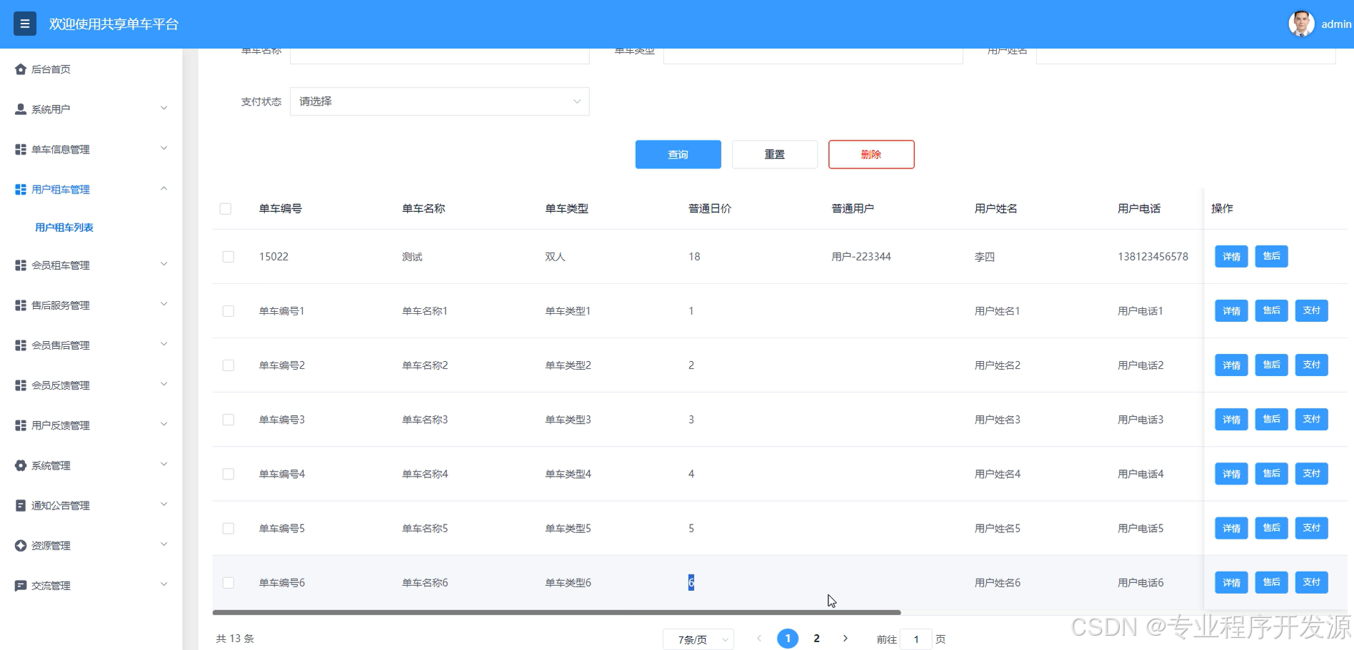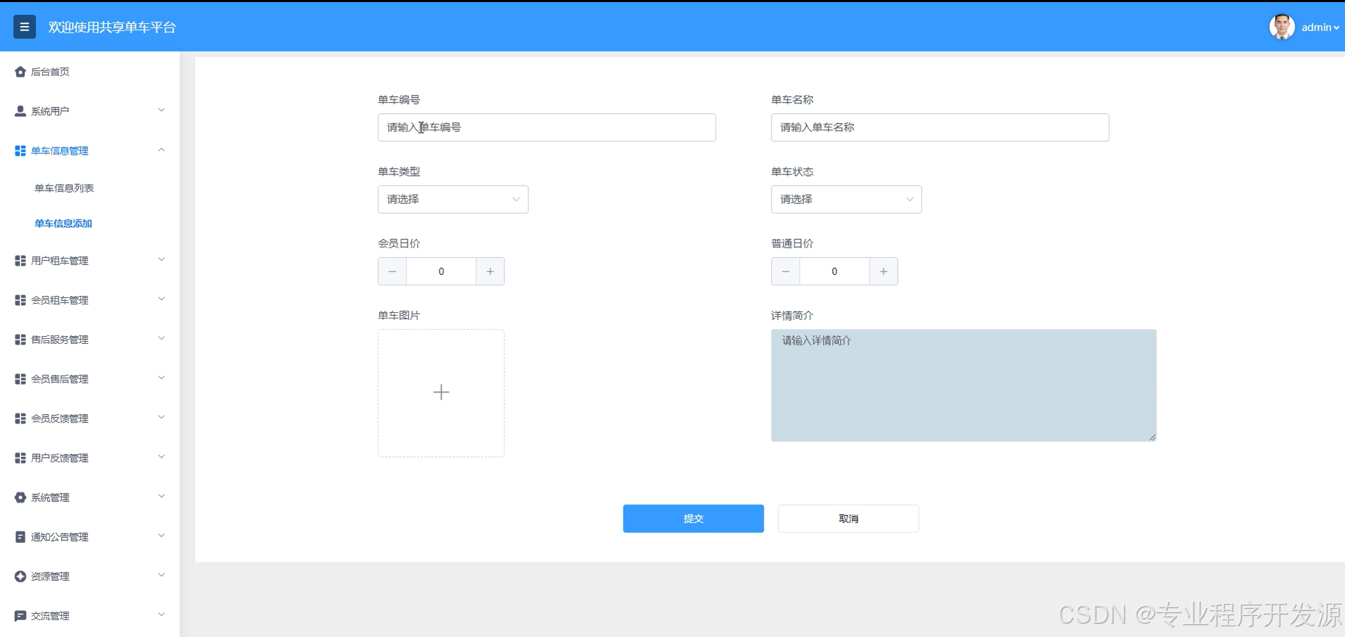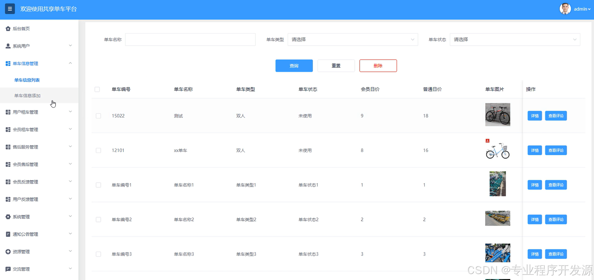 - 单车信息管理:管理员对单车信息的发布、编辑、删除、更新等操作,支持多种单车信息分类和标签。