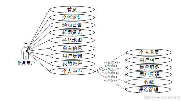 共享单车平台普通用户角色用例图如下所示。