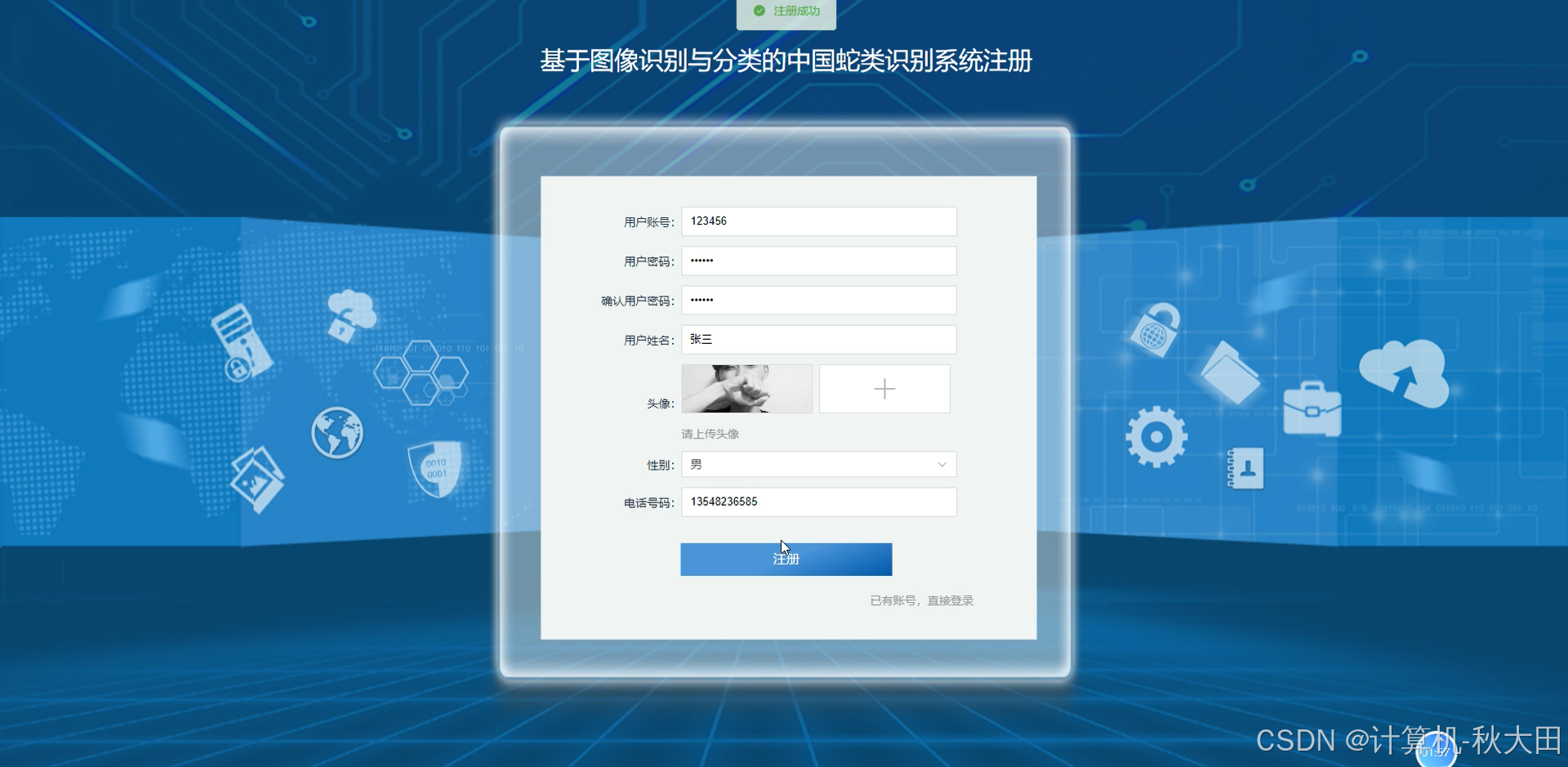 本项目研发一套基于深度学习图像识别技术的中国本土蛇类识别系统,旨在解决蛇类识别专业门槛高、效率低的难题。系统采用SpringBoot+Vue框架,支持多途径图像输入与智能预处理,利用优化的CNN模型对超过200种中国常见蛇类进行高精度分类识别,准确率达95%以上。核心功能包括即时物种鉴定、毒性分析与安全应急指引,以支撑蛇咬伤精准救治;同时集成知识库查询、地理风险预警与数据管理模块,服务于生态保护、