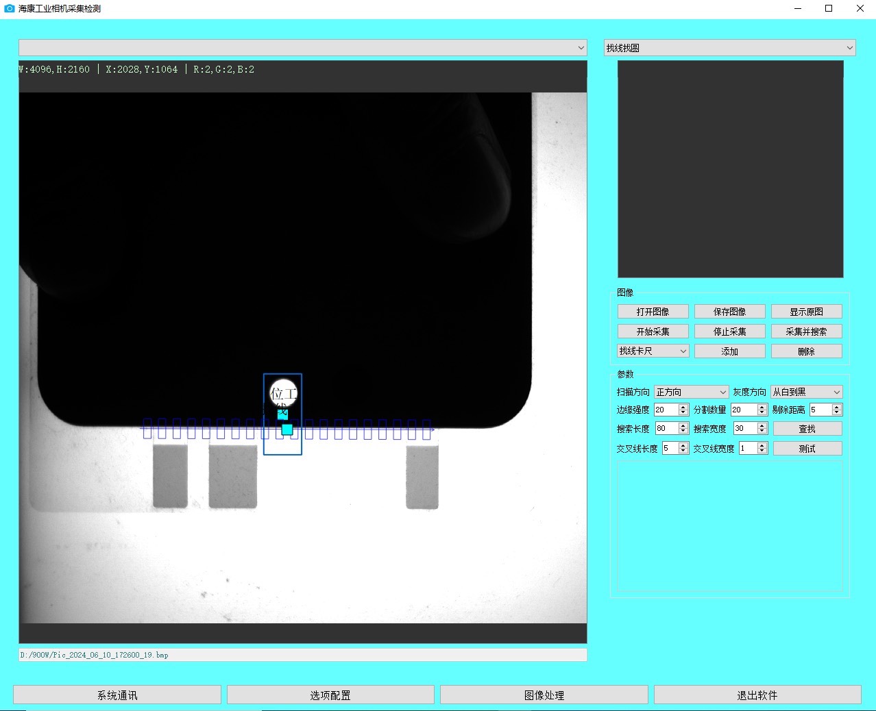 基于opencv与qt开发的卡尺工具,卡尺工具,具有工具跟随功能,找线找圆工具可以根据形状匹配位置定位实现带X、Y以及角度偏差的自动纠偏,图像采集,图像处理,卡尺工具,找线,找圆,颜色检测,模板匹配,形状匹配,海康工业相机采集+基于形状的模板匹配界面,提前说明,形状匹配算法和找线找圆算法封装成dll直接调用的,其他都是源码,是不错的学习资料,程序资料。有次客户拿了批表面有划痕的工件来测试,咱们的算