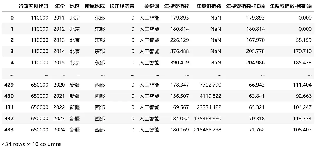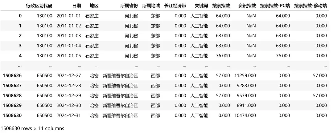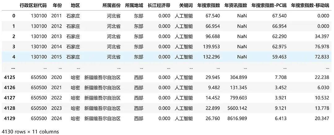 (2011-2024年)各省、地级市人工智能关注度(百度指数)数据