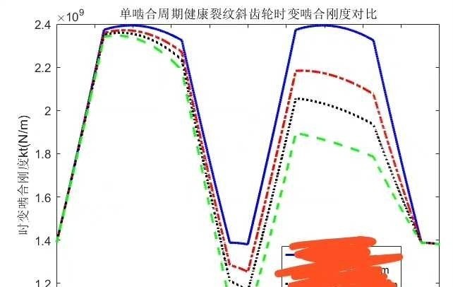 基于传统势能法含裂纹斜齿轮时变啮合刚度(裂纹斜齿轮),代码保证运行无问题,出图效果如页面简介