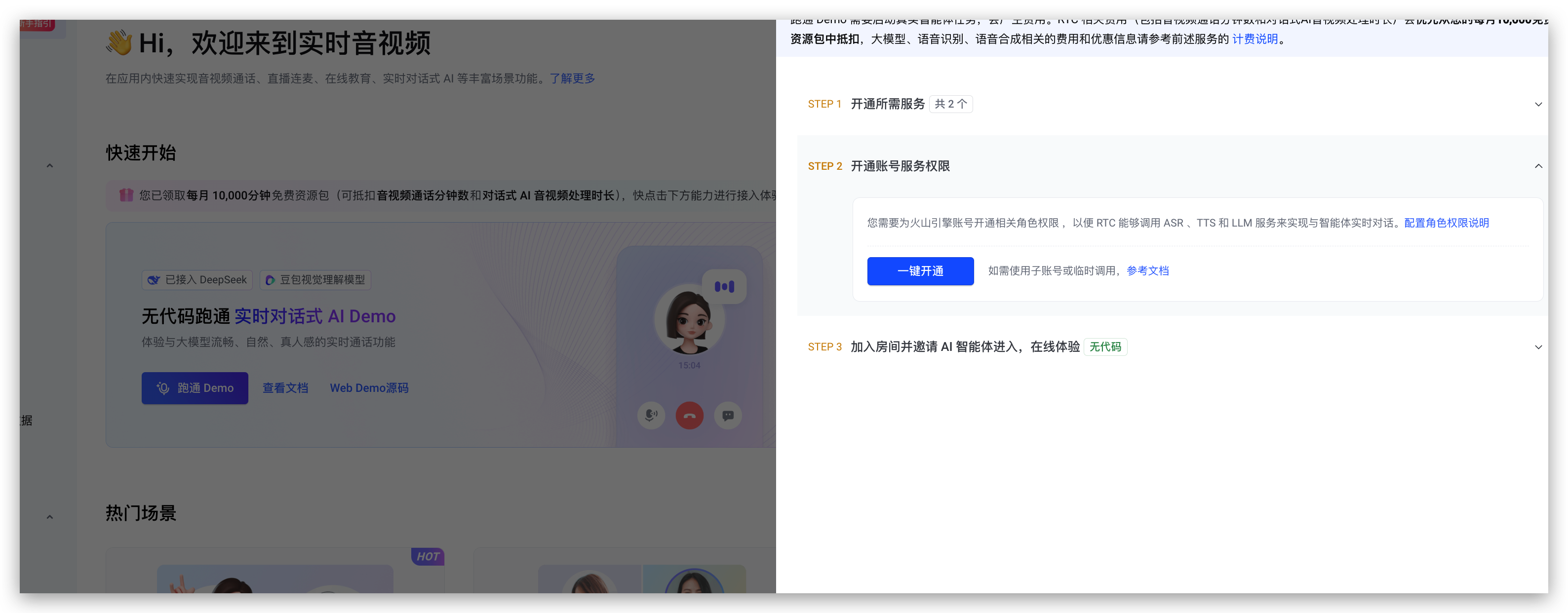 1、开通对应的火山引擎服务,包括实时音视频、语音合成、语音识别等服务。