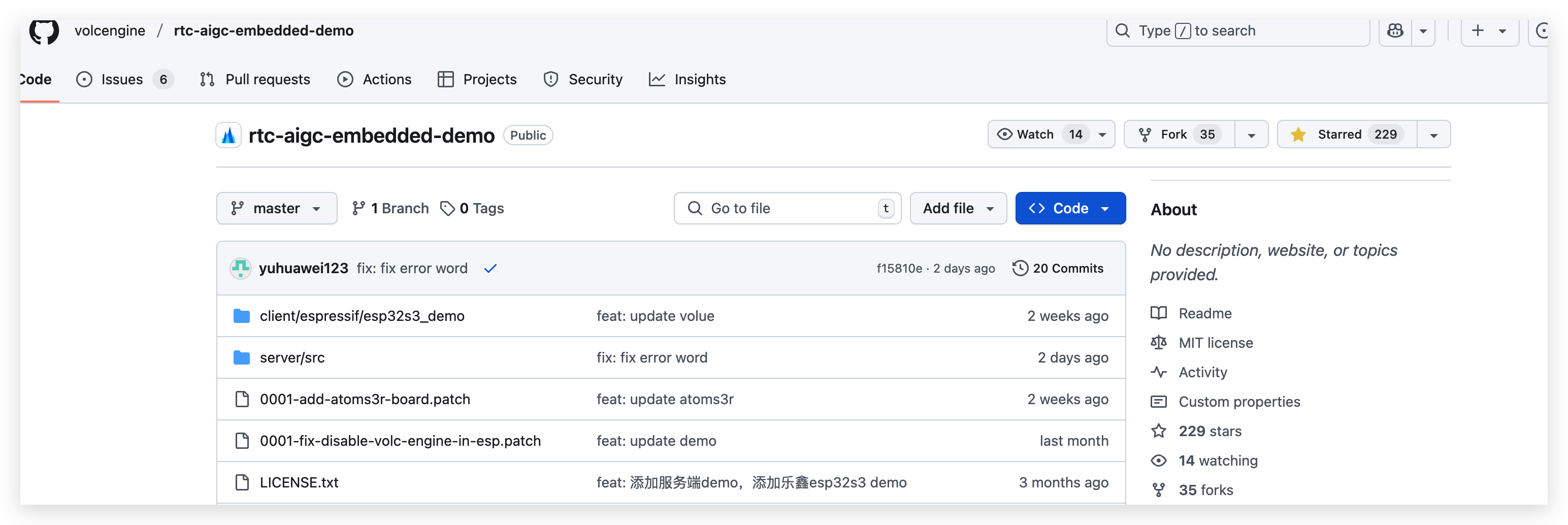 git clone https://github.com/volcengine/rtc-aigc-embedded-demo.git