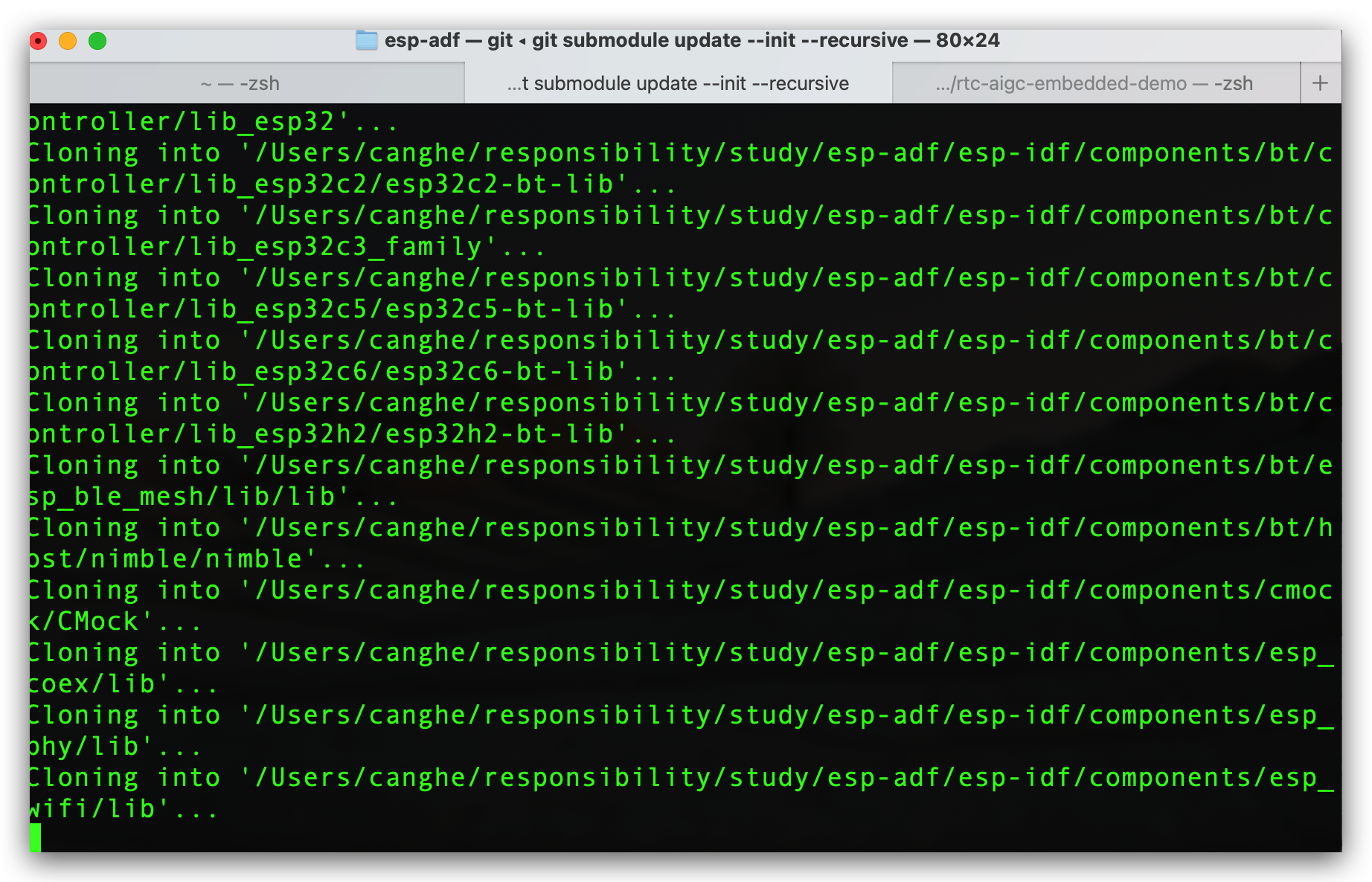 2、将乐鑫 ADF 框架克隆到本地,并同步各子仓(submodule)代码