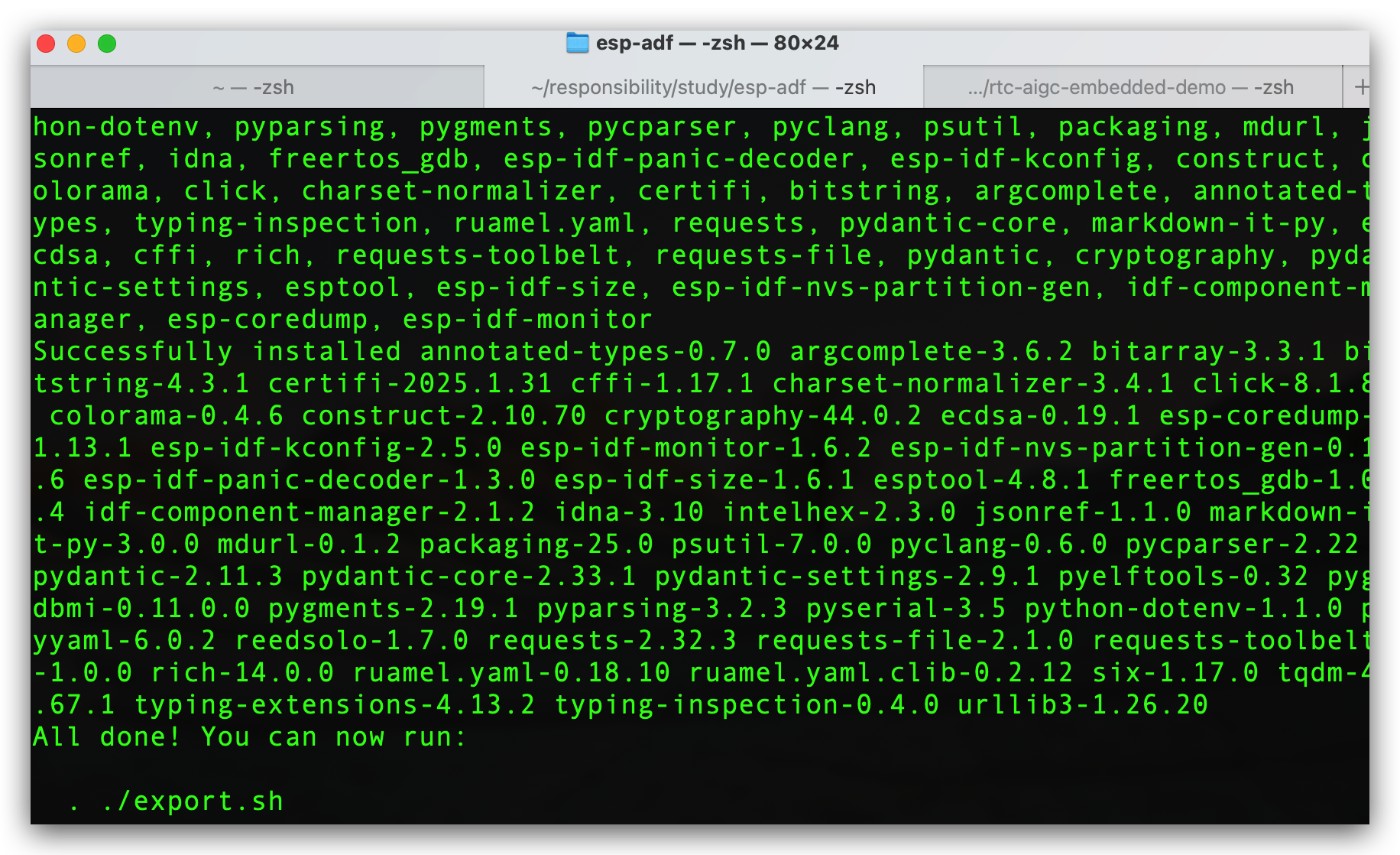 $ADF_PATH 替换成自己的实际安装路径,比如我这里是:/Users/canghe/responsibility/study/esp-adf