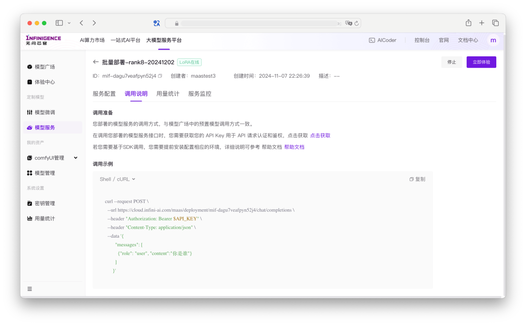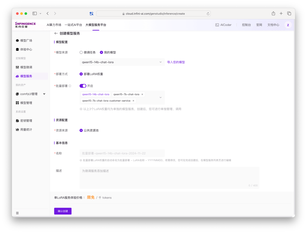 具体操作文档:https://docs.infini-ai.com/gen-studio/serving/create.html