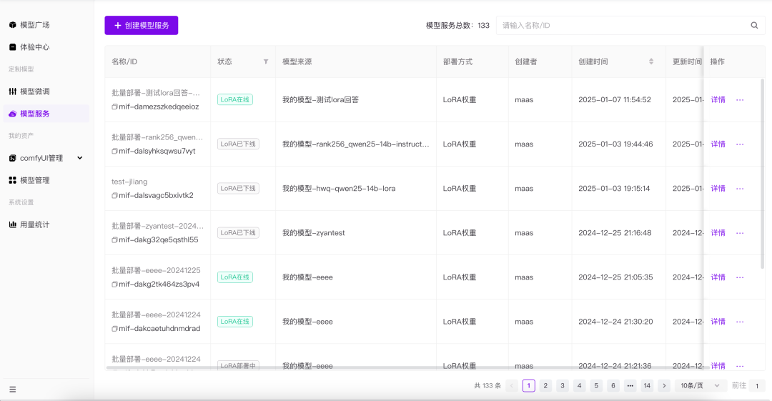 大多可以上传模型进行推理的平台,一般都是必须上传整个模型文件的。有的平台虽然支持Lora微调,但由于基模都是自己的闭源模型,推理即使是Lora模块推理的,但我们也没有办法自定义上传Lora模块。无问芯穹这个推理平台的设计也确实蛮有意思的。