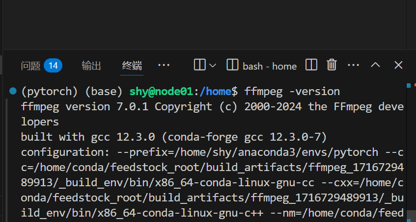 conda install -c conda-forge ffmpeg验证是否安装成功