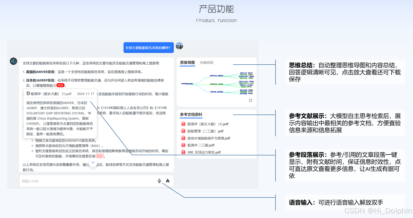 航运大模型Hi-Dolphin已接入DeepSeek R1接口,同时融合知识图谱(Knowledge Graph)和检索增强生成(RAG)技术,为航运上下游企业单位提供强大的信息整合和智能决策支撑工具。